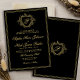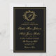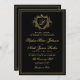 Elegant vintage crest Victorian botanical monogram black and gold classic formal traditional framed wedding invitation featuring a classy hand lettered calligraphy script. +++++++++++ Suitable for timeless stylish old money themed weddings.
