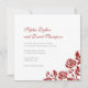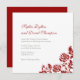 Elegantes, Vintages, blumengeschmücktes Hochzeitsdesign. Delikate Rose Spitzen-Eckmuster in Rot. Passen Sie Ihre Namen in der Roten Schrift von Crimson Rose und Ihre Hochzeitsinformationen in schicken dunklen Salbei Schriften an. Entworfen, um unsere Classic Crimson Rote Rose Lace Wedding Collection zu passen.