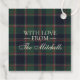 This elegant and contemporary gift bag label features a plaid pattern with the classic "Season's Greetings" message. It showcases shades of green, dark blue, and red, evoking a classy and nostalgic English holiday ambiance. You can personalize it with your own family name or text. This label is ideal for decorating Christmas gifts in a classic colonial style, as well as for a charming country cottage or log cabin theme.