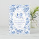 Classic Deep Blue Floral Toile 60th Birthday Invit Einladung