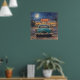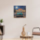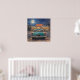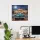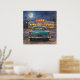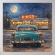 Artwork of a classic diner scene at night in an impressionistic pastel painting style. A classic teal automobile parked outside a bustling, retro diner under a brilliant full moon. Rendered in a deeply textured, impressionistic pastel style, this piece perfectly balances the cool, starry blues of the midnight sky with the warm, inviting neon glow spilling from the diner's windows, evoking a profound sense of nostalgia and late-night adventure. It draws the viewer in with its evocative lighting and rich, tactile brushstrokes. It serves as a stunning visual anchor that brings a cozy, retro atmosphere to any room. It is the perfect statement piece for vintage inspired kitchen, a game room, or a den.