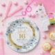 Classic Dusty Blue 16 . Geburtstag Gold Glitzer Pappteller