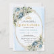 Classic Dusty Blue Gold Greenery Quinceañera Einladung