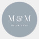 Classic Dusty Blue Monogram Typography Wedding Runder Aufkleber