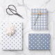 Classic Dusty Blue Polka Dots Gingham Pattern Mix Geschenkpapier Set