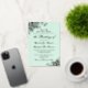 Diese schöne Einladung zum Hochzeitswettbewerb im Rahmen einer Hochzeit mit Folie mit einem klassischen Stil mit Spitzen-Filigree und extravaganten Schriftzeichen auf einem hellen neo-mint-grünen Hintergrund. Die Formulierung ist formell und traditionell, wobei die Einladung von den Eltern der Braut erteilt wird. Elegant und stilvoll, wird diese Einladung Ihrem Hochzeitsfest Klasse und Anmut verleihen.