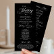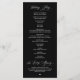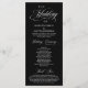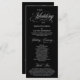 Elegantes klassisches Schwarz-Weiß-Thema, Hochzeitszeremonie-Programm in 4x9 Zoll (lang) Karte. Es ist mit Scrollakzent entworfen, der personalisiert werden kann mit benutzerdefiniertem/personalisiertem Text für Ihr Brautparty, Zeremonie Details, Gedenkhinweise und Dankeschön-Nachricht.