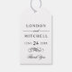 Formale Gastgeschenk Hochzeit-Tags in Schwarz/Weiß zeichnen sich durch eine schöne Typografie mit klassischer Blockschrift aus. Der benutzerdefinierte Text in Monogramm kann mit den Namen von Braut und Bräutigam, dem Hochzeitstermin und einer Danksagung personalisiert werden. Enthält einen dekorativen Bildlauf-Akzent. Bitte laden Sie unsere Classic Elegant Schwarz/Weiß und White Wedding Kollektion für die Koordination von Entwürfen ein.