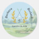 Classic Elegant Custom Golf Theme Wedding Round Sticker with watercolor golf course in the background. Names of the bride and groom along with the date of the wedding. If you need any design assistance, just send a message or an email to charmdesignstudio@rcn.com and we'll be delighted to assist.