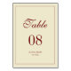 Classic Elegant Ivory Wedding Script Custom Names Table Number. A formal and traditional beige/cream and wine red wedding table number card, designed with script lettering. Customize with your table numbers, bride and groom names, and your wedding date.