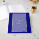 Klassisches und elegantes Blue und Gold Hochzeitsgast-Gästebuch mit echter Folie. Passen Sie den vorderen und seitlichen Text an. Großartiger Schreibtag für Ihren großen Tag. Verwenden Sie die Vorlage, um Ihr eigenes elegantes Band Hochzeitsgast-Buch zu erstellen.