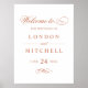 Formale Terracotta orange Hochzeit im Herbst Begrüßungszeichen Design bietet schöne Typografie, die eine traditionelle geblüht Kalligraphie Skript mit klassischen Blockschrift kombiniert. Enthält einen dekorativen Scrolldesign-Akzent. Der benutzerdefinierte Text kann mit einem Monogramm der Braut- und Bräutigam-Namen und dem Hochzeitstermin vollständig personalisiert werden. Bitte kaufen Sie unsere Classic Elegant Terracotta Orange Wedding Collection für die Koordination von Entwürfen.