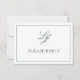 Classic Emerald Green Script Monogram No Meals RSVP Karte