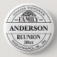 Classic black and white family reunion button featuring a clean badge layout designed for easy group approval and fast customization. Personalize the family name, reunion year, location, dates, slogan or other details while the “Family Reunion” wording remains fixed for a clear and consistent event identity.