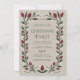 This gorgeous Christmas party invitation conjures up all the cozy Christmas feelings, boasting a hand drawn floral frame in traditional Christmas colors of deep green, burgundy red, and ivory over a custom color background (shown in sand beige). The back of the card is dark green, but the color can be customized, if desired.