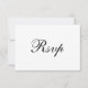 These elegant and modern wedding RSVP response cards feature a black and white classic layout and formal calligraphy, and has a scannable QR code so that guests can respond online at your wedding website. The back of the card is solid white, with the word "Rsvp" in black as a decorative element.