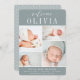 Elegante Geburtenankündigungen zeigen vier neu geborene Fotos, die in einer Rasterkollage auf staubgrünem Hintergrund angeordnet sind. "Welcome [name]" erscheint oben in der schicken Kalligraphie-Schrift und klassischen Blockschrift. Personalisieren Sie das Baby mit dem vollständigen Namen, den Geburtsstatistiken und einer Familiensignatur unten. Ein einfaches und sauberes, geschlechtsneutrales Design für die Ankündigung der Ankunft Ihres Kleinen.
