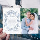 This classic and romantic design is a modern adaptation of an historic French etched frame of dusty blue intertwined roses, flowers, foliage and ribbons ca 1770 by Rococo designer Pierre Ranson. It includes customizable text fields, a photo template and a complementary floral graphic on the back.
