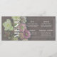 Menü-Karte mit Live-Frühlingsblüten in stimmungsvollen und gedämpften Tönen vor einem dunklen Walnussholz-Hintergrund. Einfach weißer Text lasse dem Gast zu wissen, was in Vorbereitung ist. Dieses Design ist Teil unserer Jewel Box Hellebore Harvest Collection. Besuchen Sie unseren Shop für weitere Designs.