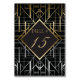 Classic und Sophisitcated, Black and Gold in Art Deco Stil der rauschenden 20er Jahre, Roaring Twenties Gatsby Style Vintag und Elegant, mit einem Thema "Great Gatsby" in den 20er Jahren in Schwarz und Gold. Ein schwarzer Hintergrund unterstreicht das aufwändige, geometrische Art Déco-Design und die Schrift, die in einem Gradientengold erschaffen wurden.