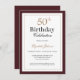 Classic Gold Burgundy 50th Birthday Party Einladung