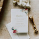 Diese klassische, goldbordeauxfarbene Rezeptionskarte ist perfekt für eine rustikale Hochzeit. Die Blume sind in den Farben Weiß, Bordeaux und Gold gehalten, Beeren mit grünem Blattwerk in eleganten Bouquets.
