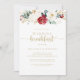Dieses klassische, goldblühende Hochzeitsfrühstück ist perfekt für ein rustikales Ereignis. Die Blume sind in den Farben Weiß, Bordeaux und Gold gehalten, Beeren mit grünem Blattwerk in eleganten Bouquets.