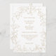Das Classic Gold Greenery Wedding Invitation Design - sorgfältig entworfen, um eine moderne romantische Ästhetik zu verkörpern. Eine klassische Mischung aus weißem Hintergrund und zarten goldenen Blätter ergänzt durch ein einfaches Kalligraphieskript in Verbindung mit einem dezenten Serifen-Schriftart. Das Ergebnis ist ein perfekt gepflegtes Ambiente für Ihre Hochzeit, wobei jedes Detail die Eleganz Ihrer Liebe widerspiegelt. Dieses Design bietet eine mühelose Option, um eine wirklich schöne und unvergessliche Ehefeier zu präsentieren. Ob Frühjahr, Sommer, Herbst oder Winter, das zeitlose Vintage Ambiente dieses vergoldeten Designs verspricht einen charmanten und zauberhaften Weg, Ihre einzigartige Reise gemeinsam zu ehren. Wir hoffen, dass Sie mit dieser Kollektion so viel in Liebe fallen wie wir. Bei Fragen oder besonderen Wünschen für personalisierte Produkte, zögern Sie bitte nicht, uns zu kontaktieren. Wir freuen uns, Ihnen in jeder Hinsicht zu helfen.