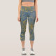 Classic Gold Leaf Blue Background Capri Leggings