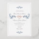 Erleben Sie Ihre Feier mit dieser klassisch staubblauen Hochzeitseinladung, die mit eleganten französischen Rokoko-Blumendetails und einem romantischen, echten Goldfolienköpfchen besticht. Diese Vintag inspirierte Einladung, die für zeitlose Eleganz konzipiert ist, Set für einen stilvollen und romantischen Hochzeitstag. Ideal für Paare, die historischen Charme und anmutiges Design schätzen.