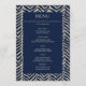 Ein klassischer Herringbone-Hintergrund in Marine und Taupe bildet die Grundlage für dieses traditionsreiche, moderne und elegante Hochzeitsmenü, das sich an die Bedürfnisse der Empfang anpassen lässt. Ein marineblauer Beilage enthält die passenden, individuell anpassbaren Hochzeitsinformationen.