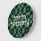 Classic Holiday Green Checkered Pattern Custom Große Wanduhr