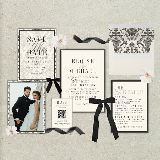 Classic Ivory Damask Rococo Pattern Photo Wedding Save The Date
