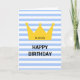 Diese hübsche, schick minimale Geburtstagskarte mit gelber Krone mit dem eigenen Text des Königs und einem benutzerdefinierten Text von glücklichem Geburtstag auf weißem und blauem Streifen Muster Hintergrund ist eine schöne Wahl, um einen Geburtstag Gruß an Ihren besonderen, wie Ihren Großvater, Vater, Ehemann, Freund oder Sohn, etc.