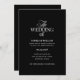 Diese eleganten, alten Geldausstattungen mit all-in-One-Einladungen für Hochzeiten bieten einen dramatischen schwarzen Hintergrund und eine Mischung aus klassischem weißem Text und moderner Kalligrafie. Ein elegantes und minimalistisches Design, das perfekt für Ihre zeitlose, formelle Hochzeit ist. Die Rückseite der Einladung bietet Platz für alle Ihre Hochzeitsdetails, sowie einen scannbaren QR-Code, damit die Gäste online über Ihre Hochzeitswebsite UAWG können.