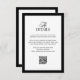 Diese eleganten, alten Geldgeschenk-Gästekarten sind mit einem dramatischen schwarzen Rahmen und einem Schwarz-Weiß-Text-Design ausgestattet. Es gibt eine Mischung aus klassischem schwarzem Text und moderner Kalligrafie für ein elegantes und minimalistisches Design, perfekt für Ihre zeitlose, formelle Hochzeit. Sie können diese Karten für die Anfahrt, Empfang- oder Transportinformationen, Hotel- oder Unterkunftsinformationen und alle anderen Hochzeitsdetails verwenden, die Sie für Ihre Gäste benötigen. Es gibt einen scannbaren QR-Code, den Ihre Gäste verwenden können, um Ihre Hochzeitswebsite zu besuchen, um mehr Details zu erhalten oder um UAWG zu erhalten.