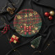 This festive design features a traditional red plaid background accented with shimmering gold details. At the top, Santa rides his sleigh pulled by reindeer, bringing a timeless Christmas charm. The bottom showcases an ornate holiday arrangement with holly leaves, red berries, pine branches, and a luxurious red bow. The rich green backdrop adds elegance, creating a perfect blend of classic and festive holiday spirit. Ideal for seasonal celebrations and traditional Christmas themes.