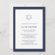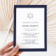 Diese schlichten und modernen Bar Mitzvah- oder Bat Mitzvah-Einladungen sind mit einer dunkelblauen Grenze versehen, mit einem eleganten, passenden Text und einem silbernen Stern von David.