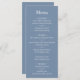 Lass deinen Gästen, was auf der Speisekarte für den Hochzeitsempfang steht, und verwende dieses klassische monogramm-dustige blaue Hochzeitsmenü.