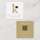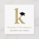 This classic and simple gold and white graduation enclosure card design features a bold monogram letter 'k' of the graduate with a black mortarboard / graduation cap as an accent.
