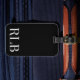 Ein minimalistischer monogramm Gepäckanhänger mit großen typografischen Initialen in einem klassischen Schriftart auf einem einfachen schwarzen Hintergrund. Das perfekte Geschenk oder Accessoire für Ihren nächsten Urlaub!