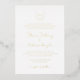 Traditionelle und klassische Goldfolienhochzeit Einladung mit einem Hochzeitsstift mit Ihrem Monogramm in einem Kranz zusammen mit Ihren Namen in einem Drehbuch / Kalligrafie. Alle Designelemente auf der Vorderseite sind in realer Goldfolie. Diese einfache, aber elegante Einladung ist ideal für eine feierliche Hochzeit.