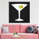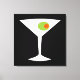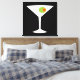 Diese klassische Leinwand von Martini Stretched (schwarz) weist einen schwarzen Hintergrund auf und zeigt eine weiße Silhouette eines Martini-Glases. Im Inneren des Glases befindet sich ein herrlicher grüner Olivenbaum mit einem orangefarbenen Pimento. Das ist ein lustiges Stück Wandkunst für jeden, der sich wünscht, in einem klassischen Film eine Figur zu sein. Schütteln Sie bitte nicht um! *Dieses Design funktioniert auf einer größeren Leinwand.