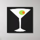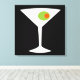 Diese klassische Leinwand von Martini Stretched (schwarz) weist einen schwarzen Hintergrund auf und zeigt eine weiße Silhouette eines Martini-Glases. Im Inneren des Glases befindet sich ein herrlicher grüner Olivenbaum mit einem orangefarbenen Pimento. Das ist ein lustiges Stück Wandkunst für jeden, der sich wünscht, in einem klassischen Film eine Figur zu sein. Schütteln Sie bitte nicht um!