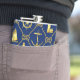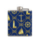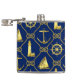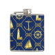 Lassen Sie Ihre Liebe zum Segeln und zum Meer mit dieser klassischen nautischen Goldmedaille und der marineblauen Flasche, die sich perfekt für Bootsführer, Segler und alle Liebhaber des Meeres eignet. Gold nautische Elemente: Leuchtturm, Schiffsrad, Anker und Segelboot, werden von Goldseil mit nautischen Knoten vor marinebaublauem Hintergrund gerahmt.