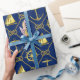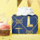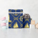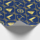 Nutzen Sie dieses klassische Papier für alle Ihre nautischen Themenveranstaltungen wie Hochzeiten, Partys, Strandwärme, Babyduschen, Geburtstage. Gold nautische Elemente, Leuchtturm, Schiffrad, Anker und Segelboot, gerahmt durch goldenes Seil mit nautischen Knoten vor marinebaublauem Hintergrund.
