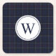 Classic Navy Blue Plaid Christmas Monogram Rechteckiger Pappuntersetzer