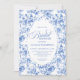 Classic Navy Blue Toile Rose Bridal Shower Invite Einladung
