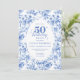Classic Navy Blue Toile Roses 50th Birthday Invite Einladung