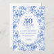 Make this milestone celebration unforgettable with a 50th birthday invitation featuring classic French toile de jouy roses in elegant shades of navy blue, royal blue, dusty blue, and deep blue. This refined floral design blends timeless European charm with modern sophistication, creating a truly classy invitation worthy of a 50th birthday celebration.